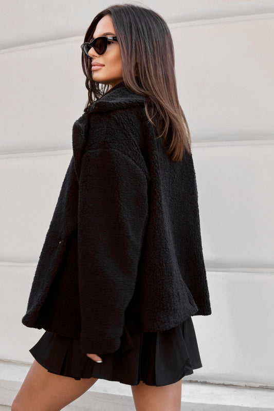 Warme Teddyfell Jacke Fluffy in edlem Schwarz