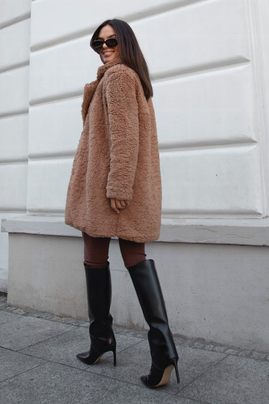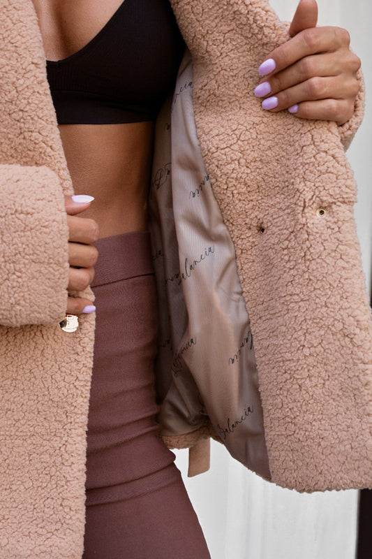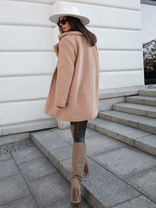 Eleganter Teddy - Mantel in Taupe – weich, warm und stilvoll
