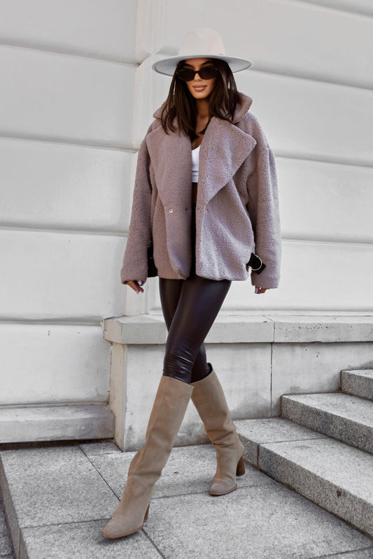 Fluffy Teddyjacke in Taupe – kuschelig und modern