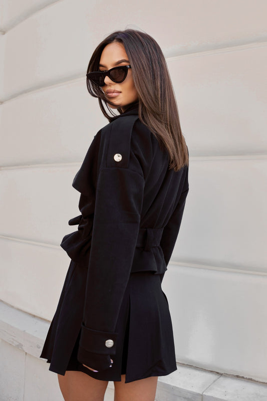 Trenchcoat London Schwarz zeitloser Damen-Mantel mit Bindegürtel