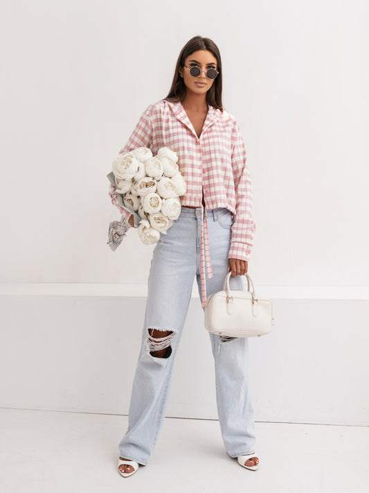 Hoodie SOHO Karo - Rosa und Ecru