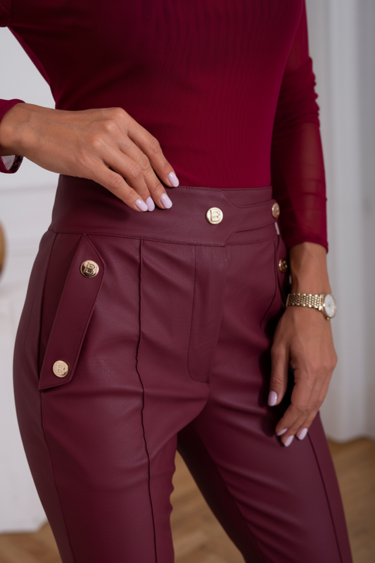 Leder-Hose Gail Bordeauxrot trendige Kunstleder-High-Waist für stilvolle Outfits